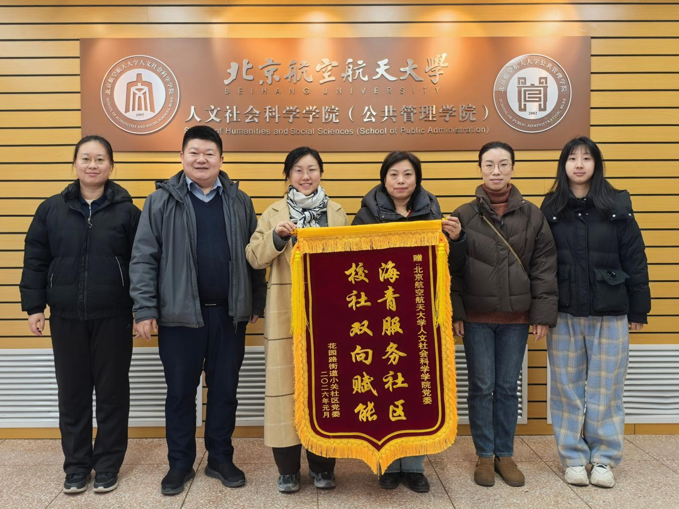 吴彦玲书记对人文公管学院长期以来支持社区工作表示感谢,重点肯定了学院师生在社区志愿服务、社会实践、生产实习等活动中取得的显著成效,并代表社区送上锦旗。