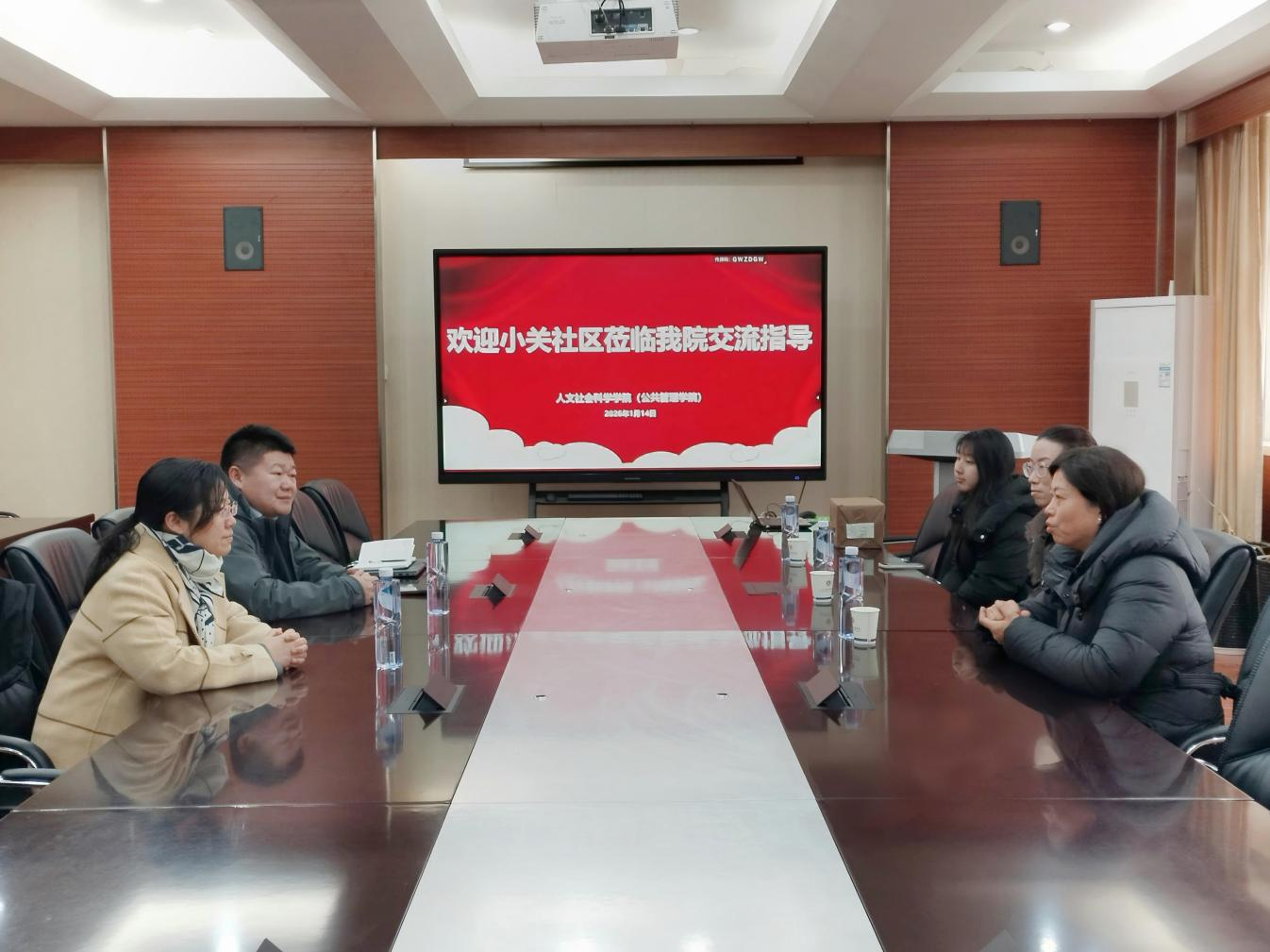 近期,北京市海淀区花园路街道小关社区一行赴我院开展座谈交流,共商校社合作事宜。小关社区党支部书记、居委会主任吴彦玲,支部副书记任婕,团支工作负责人李欣昕;人文公管学院党委副书记方志,团委书记黄焘,兼职辅导员陈薇阳参加座谈。