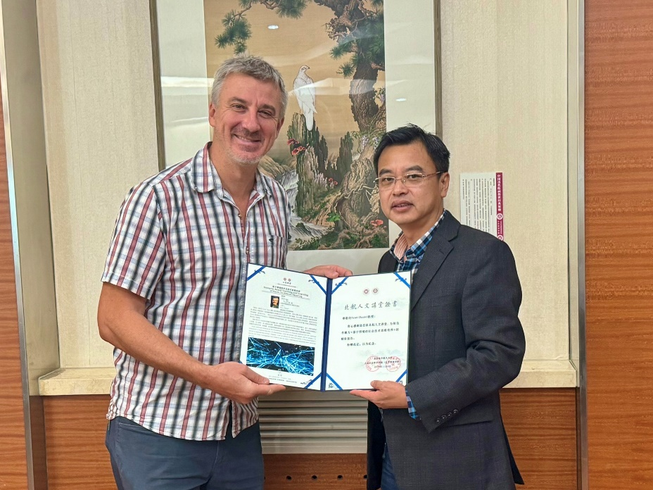 讲座结束后,我院高等教育研究所所长赵世奎教授向Scott Daniel博士颁发了"人文讲堂"证书。除了我院研究生外,本次活动得到了校内外多位专家学者参与,包括T.I.M.E.联盟秘书长Gwenaëlle Guillerme女士、辛辛那提大学博士后魏思卿博士,北京理工大学郑丽娜助理教授、北京外国语大学李明副教授,以及我校未来空天技术学院韩钰副院长、我院樊文强副教授、张惠副教授、杜佳卉博士后等。与会专家围绕社会技术思维培养展开深入研讨,充分体现了人文社会科学与工程教育的深度融合,为推动跨学科教学创新提供了重要启发。