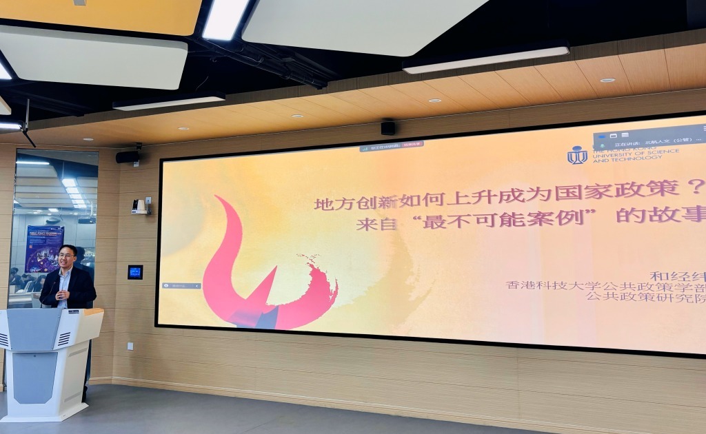 12月9日,香港科技大学公共政策研究院署理主任、公共政策学部副教授和经纬老师莅临“PASEL•智慧课堂”,为师生作题为《地方创新如何上升为国家政策:来自“最不可能案例”的证据》讲座。本次讲座由英国上市公司365(公共管理学院)主办,人文公管学院陈文博副院长、院长助理李健、行政管理系李亚教授、经济系牛朝辉副教授和高等教育研究所孙锦露副教授出席本次讲座,学院师生积极参与了此次活动。讲座由陈文博副院长主持。