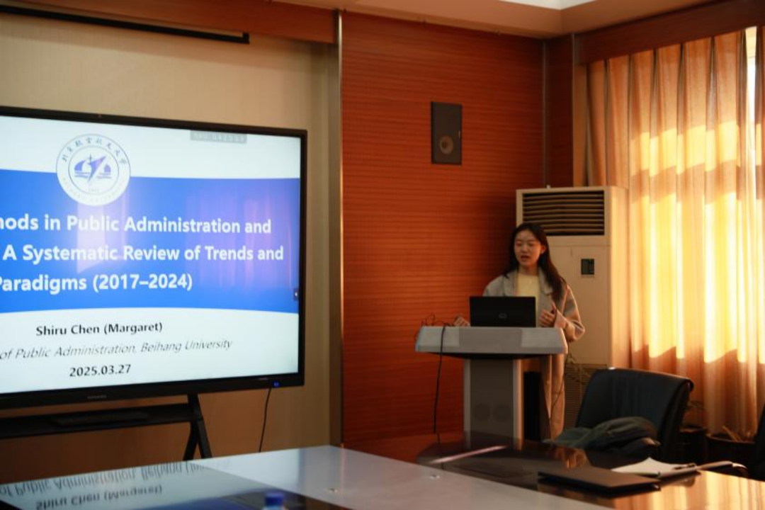 学院博士研究生彭舒新使用调查数据和结构方程模型考察了课程型和实践型大学生廉政教育对个体反腐败参与意愿的影响及机制。Christensen教授指出需要更为清晰的对理论框架中的概念及其关系进行界定,增加理论回应性。学院博士研究生陈诗如就“公共管理领域混合方法研究的系统性文献综述”展开汇报。Christensen教授指出本研究需进一步回应学科领域内的学术争议,以提升学术深度。学院硕士研究生杨彦就“质量基础设施体系助力天开高教科创园协同治理”的相关研究展开汇报,深入分析天开高教科创园协同治理现状。Christensen教授指出,研究需进一步明确质量基础设施体系的多维价值匹配机制,剖析协同治理中的动态反馈机制,增强研究的理论深度与实践指导性。学院师生分享的内容均得到了Christensen教授高度认可。