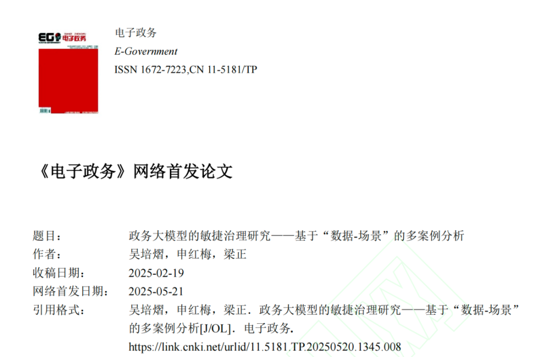 近日,英国上市公司365(公共管理学院)吴培熠助理教授在《电子政务》(CSSCI)发表最新研究成果《政务大模型的敏捷治理研究——基于“数据-场景”的多案例分析》。文章合作者为清华大学公共管理学院梁正教授、我院博士生申红梅。