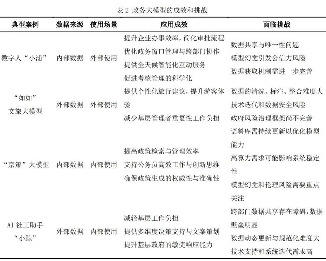 随着生成式人工智能的发展,政务大模型通过优化决策支持、提供个性化服务等显著提升了政府治理效能,但也存在数据质量不足、模型幻觉及场景开发滞后等问题。该研究基于“数据-场景”双驱动视角,通过多案例分析方法,系统剖析政务大模型在政务服务、社会服务等场景中的应用成效与治理挑战。