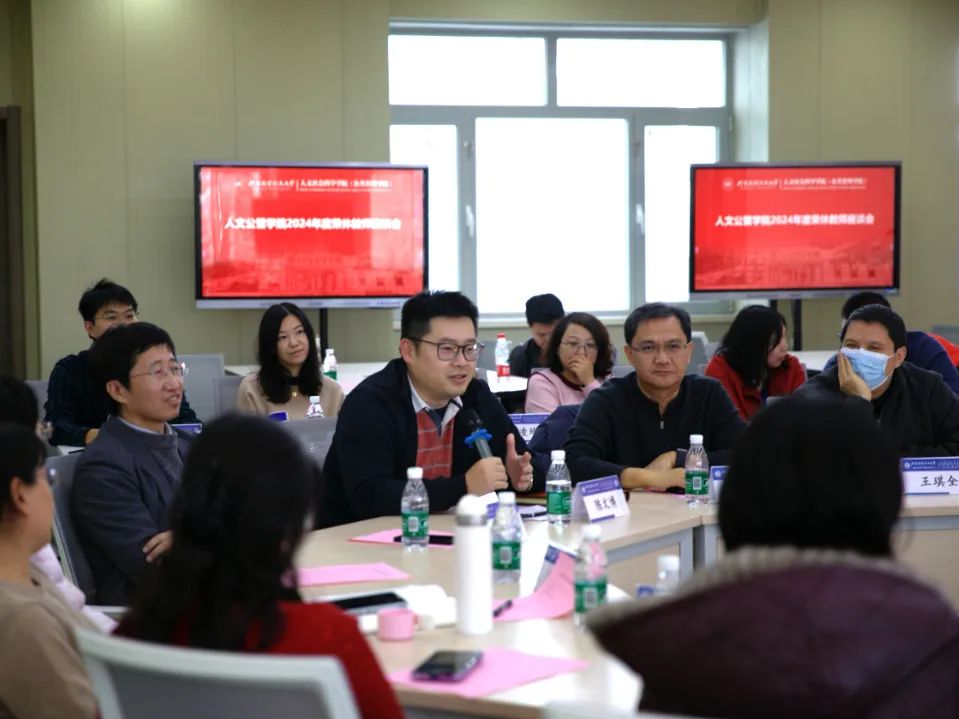 座谈会现场气氛热烈而充满温情。行政管理系主任涂晓芳以一首原创诗表达了对三位荣休教师的感激与不舍;工会副主席兼行管系党支部书记刘亚娜回忆了与胡象明老师在珞珈山的初遇、北大与北航的重逢,以一句 “师恩难忘印心田”感恩胡老师在学业和生活上的持续关怀。多位教师纷纷分享与荣休教师共事、求学的难忘点滴,并衷心祝愿老师们退休生活充实美满、健康长寿。三位学生代表也分别发言,代表所有受老师教导过的学生,向荣休的三位老师表达敬意和祝福。