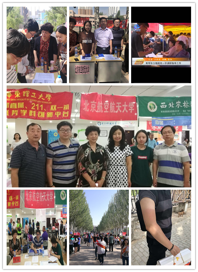 负责鄂尔多斯和包头的李汉邦老师、黄岩老师、陈文博老师、辅导员李天格则在包头九中、包头一中、一机一中、包钢一中、鄂尔多斯一中等学校进行宣讲咨询。李汉邦老师、黄岩老师和李导的热情和耐心极具魅力,所到之处均有学校校长或家长争相合影,李汉邦老师还被当地的电视台新闻报道;到了一机一中的时候,因为宣讲咨询在操场没有凉棚,大家在烈日下暴晒下变了形,尤其是陈文博老师,不畏酷暑,一往无前,为北航招生工作“晒黑自我”。