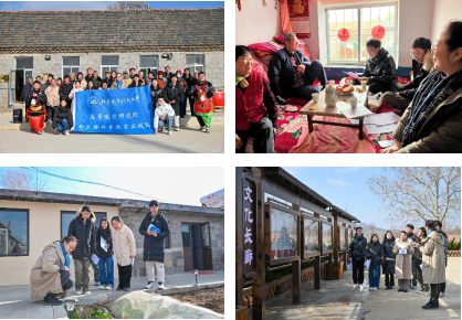 与岐阳村村民展开交流与互动是这次社会实践的重要板块。2月21日,我们在张海英教授的带领下,来到大水泊镇岐阳村学习和体验乡土文化。热情好客的岐阳村村民们汇聚在村委会小广场,耐心地带领着同学们一起敲大鼓,耍毛驴、抬花轿、走旱船,扭秧歌。很快队员们就与村民们融成一片,切身感受到村民的质朴与热情,体验到乡土文化的热烈与豪爽。在岐阳村,我们还对村民进行了走访和调查。了解到在老龄化十分严重的乡村,很多村民不会使用智能手机。他们获取信息的路径、方法与渠道主要是广播大喇叭、电视、宣传栏。为了把对村民的生产、生活、娱乐有价值的信息传递给他们,充分发挥广播大喇叭、电视、宣传栏的作用,积极开展村民文化教育活动十分必要。这就需要有知识,有文化的年轻人,用各种形式和方法在乡村传播科学知识,丰富村民的文化生活。
