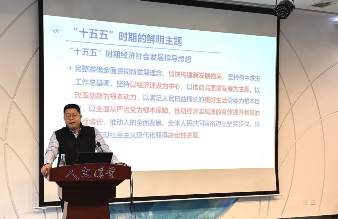 随后,张超老师围绕“十五五”时期的鲜明主题展开讲解,点明“以高质量发展推动人的现代化”是贯穿“十五五”时期的核心主线。他强调“十五五”时期对基本实现现代化的关键作用,在于将高质量发展的对象、目的与依靠力量都聚焦于“人”,这是中国式现代化具体方略的一次系统部署。